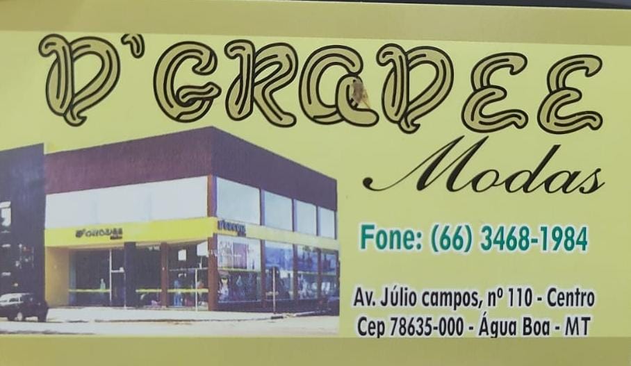 D EGRADEE MODAS COMÉRCIO VAREJISTA DE ARTIGOS DO VESTUÁRIO E ACESSÓRIOS AV JULIO CAMPOS , 110 - ANDAR 01 SALA 03 - CENTRO - AGUA BOA - MT - CEP 78.635-000 TELEFONE (66) 99204-6680 -