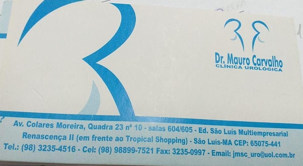 CENTRO DE ATENDIMENTO UROLOGICO CAU AV COLARES MOREIRA ED. MULTI-EMPRESARIAL, 10 - QDA 23 SALA 604E 605 - JARDIM RENASCENCA - SÃO LUIS - MA - CEP 65.075-441 TELEFONE (98) 3235-4516 - (98) 98899-7521 - (98) 3235-0997