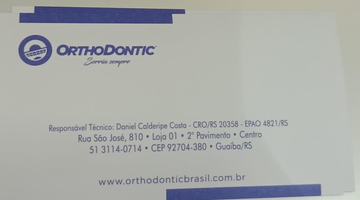 ORTHODONTIC ATIVIDADE ODONTOLÓGIA RUA SÃO JOSÉ, 810 - PAVMT02 - CENTRO - GUAIBA - RS - CEP 92.704-380 TELEFONE (51) 3114-0714 - (51) 99918-2395