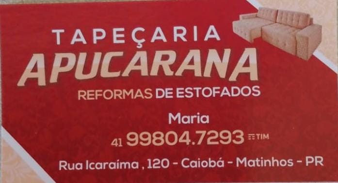 TAPEÇARIA APUCARANA RUA ICARAIMA, 120 - CAIOBÁ - MATINHOS - PR - CEP 83.260-000 TELEFONE (41) 99804-7293Sobre